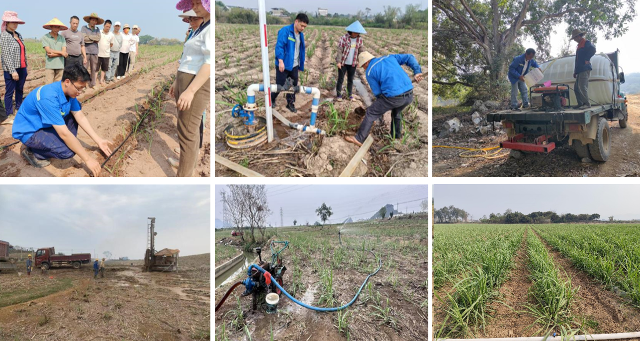 去冬今春以來,持續(xù)干旱導(dǎo)致土壤墑情降低,對宿根蔗萌發(fā)、春植蔗出苗生長不利,公司加強(qiáng)應(yīng)對,設(shè)立示范點(diǎn)強(qiáng)化引領(lǐng),串聯(lián)水源線統(tǒng)籌調(diào)度,鋪開灌溉面全域覆蓋,做好蓄水防旱抗旱工作,穩(wěn)步推進(jìn)春植蔗種植進(jìn)度,推進(jìn)春管促苗,力爭將干旱影響降至最低。主要措施包括:1、加強(qiáng)政企聯(lián)動,與當(dāng)?shù)卣鞴懿块T核查“雙高”地塊灌溉設(shè)施完善情況,及時恢復(fù)或增加設(shè)備設(shè)施,支持打井、開挖水池;建立取水點(diǎn)、完善地下取水配套設(shè)施;添置電瓶直流抽水泵、潛水泵、噴灌機(jī)等抗旱設(shè)備,增加甘蔗種植區(qū)域的可灌溉覆蓋面積,同時尋機(jī)適時開展人工增雨作業(yè)。2、公司農(nóng)務(wù)部門組織發(fā)動蔗農(nóng)對干旱地塊進(jìn)行灌溉,打出“電費(fèi)補(bǔ)貼+柴油支持+機(jī)井補(bǔ)助”組合拳,免費(fèi)發(fā)放抽水柴油、補(bǔ)貼打井、發(fā)放滴灌帶等靈活有效舉措,助力蔗農(nóng)管護(hù)甘蔗。3、每天安排農(nóng)務(wù)人員深入田間地頭指導(dǎo)蔗農(nóng)灌溉,工廠出動水車、柴油抽水機(jī),投入經(jīng)費(fèi)修建便民取水點(diǎn)。4、推廣全膜覆蓋,全膜覆蓋技術(shù)有效保持土壤溫濕度,減少水分蒸發(fā),抑制雜草生長。5、對已完成水利建設(shè)的“雙高”片區(qū),組織蔗農(nóng)開展噴灌、漫灌。6、加強(qiáng)受旱甘蔗田間管理,對能灌上水的地塊,結(jié)合抗旱灌水,及時補(bǔ)苗補(bǔ)施肥,促進(jìn)生長。